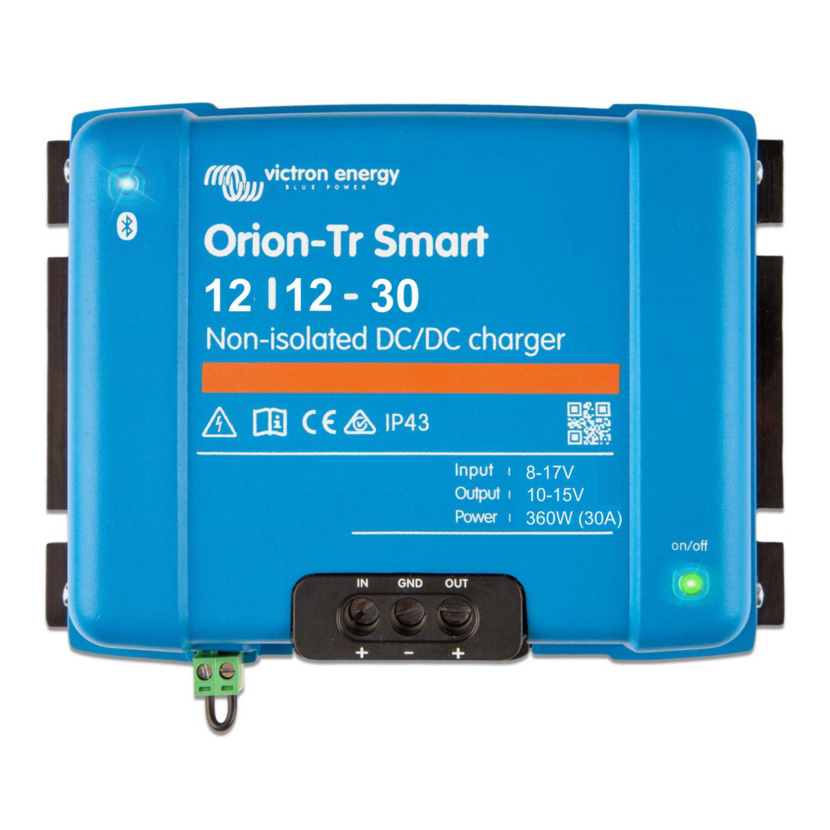 Nabíječka Orion-Tr Smart DC-DC neizolovaná je profesionální DC-DC adaptivní třístupňovou nabíječkou se zabudovanou funkcí Bluetooth. Je určena pro použití v duálních bateriových systémech ve vozidlech nebo na lodích, kde se k nabití servisní baterie používají (inteligentní) alternátor a startovací baterie. Jednotku lze monitorovat a programovat přes Bluetooth a ovládat dálkově pomocí dálkového spínače zapnutí/vypnutí. Nabíječka je také vybavena mechanismem detekce chodu motoru. Nabíječky Orion Tr-Smart jsou k dispozici v provedení 12V nebo 24V a jsou vhodné jak pro olověné kyselinové baterie, tak i pro lithiové baterie. K dispozici jsou modely až do 400 W. Kromě toho, pro zvýšení výstupního výkonu můžete paralelně zapojit neomezený počet jednotek. Je vhodná pro použití za vysokých okolních teplot, až do 55 °C, a při plném jmenovitém výstupním výkonu až do 40 °C.