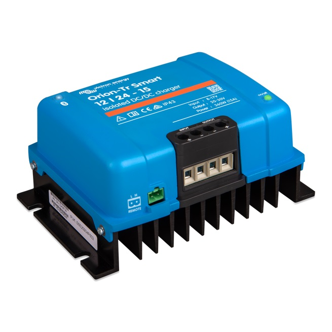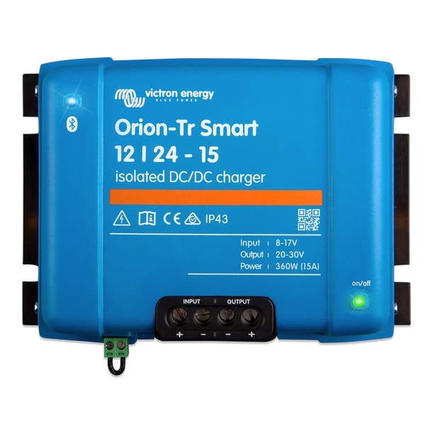 Nabíječka Victron Energy Orion-Tr Smart DC-DC je profesionální DC-DC adaptivní třístupňovou nabíječkou se zabudovanou funkcí Bluetooth. Je určena pro použití v duálních bateriových systémech ve vozidlech nebo na lodích, kde se k nabití servisní baterie používají (inteligentní) alternátor a startovací baterie. Jednotku lze monitorovat a programovat přes Bluetooth a ovládat dálkově pomocí dálkového spínače zapnutí/vypnutí. Nabíječka je také vybavena mechanismem detekce chodu motoru. Nabíječky Orion Tr-Smart jsou k dispozici v provedení 12V nebo 24V a jsou vhodné jak pro olověné kyselinové baterie, tak i pro lithiové baterie. K dispozici jsou modely až do 400 W. Kromě toho, pro zvýšení výstupního výkonu můžete paralelně zapojit neomezený počet jednotek. Je vhodná pro použití za vysokých okolních teplot, až do 55 °C, a při plném jmenovitém výstupním výkonu až do 40 °C.