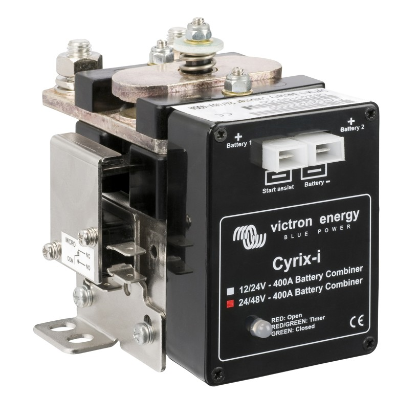 Inteligentní propojovač baterií Cyrix-i řídí nabíjení a odpojování startovací a provozní baterie. Pokud je na jedné z baterií dosaženo napětí 13,0 V (26 V) po dobu 10 minut nebo 13,8 V (27,6 V) po dobu 4 sekund, Cyrix-i baterie propojí a dochází k nabíjení obou baterií současně do plně nabitého stavu. Jakmile na jedné z baterií klesne napětí pod 12,8 V (25,6 V) po dobu 10 minut nebo 12,0 V (24,0 V) po dobu 20 sekund, dojde k vzájemnému odpojení baterií. Toto propojování a odpojování baterií funguje obousměrně. Zařízení nabízí výběr ze čtyř režimů chodu lišící se v hodnotách připojovacího a odpojovacího napětí. Výše uvedené hodnoty napětí jsou v režimu továrního nastavení (režim 0). Pro bližší informace o jednotlivých režimech viz dokumenty níže. Možnost dálkového sledování zařízení a dočasného (cca 30 sekund) propojení baterií bez ohledu na jejich napětí například pro účely startování (přesun energie z provozní baterie do startovací).