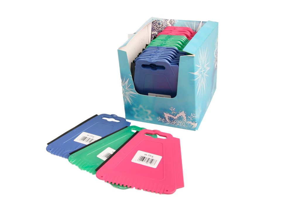 Škrabka námrazy, ledu, typ SK 03/G plastový trojuhelník se stěrkou z gumy a dvěmi škrábadly na led.