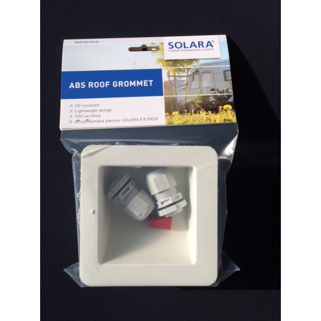 Průchodka Solara nabízí velmi lehkou konstrukci a je odolná UV záření a slouží pro vodotěsný prostup kabelů od solárního panelu střechou karavanu, obytného vozu, lodě apod.Široký adhezní šev a vodotěsné PG šroubové spojení umožňují bezpečnou instalaci a spolehlivou funkci.Díky odolnosti proti UV záření a proti vlivům počasí je vhodná pro venkovní použití. Kabelové šroubení utěsní vedený kabel tak, že do krytu nemůže proniknout vlhkost. Dodání včetně PG šroubení.